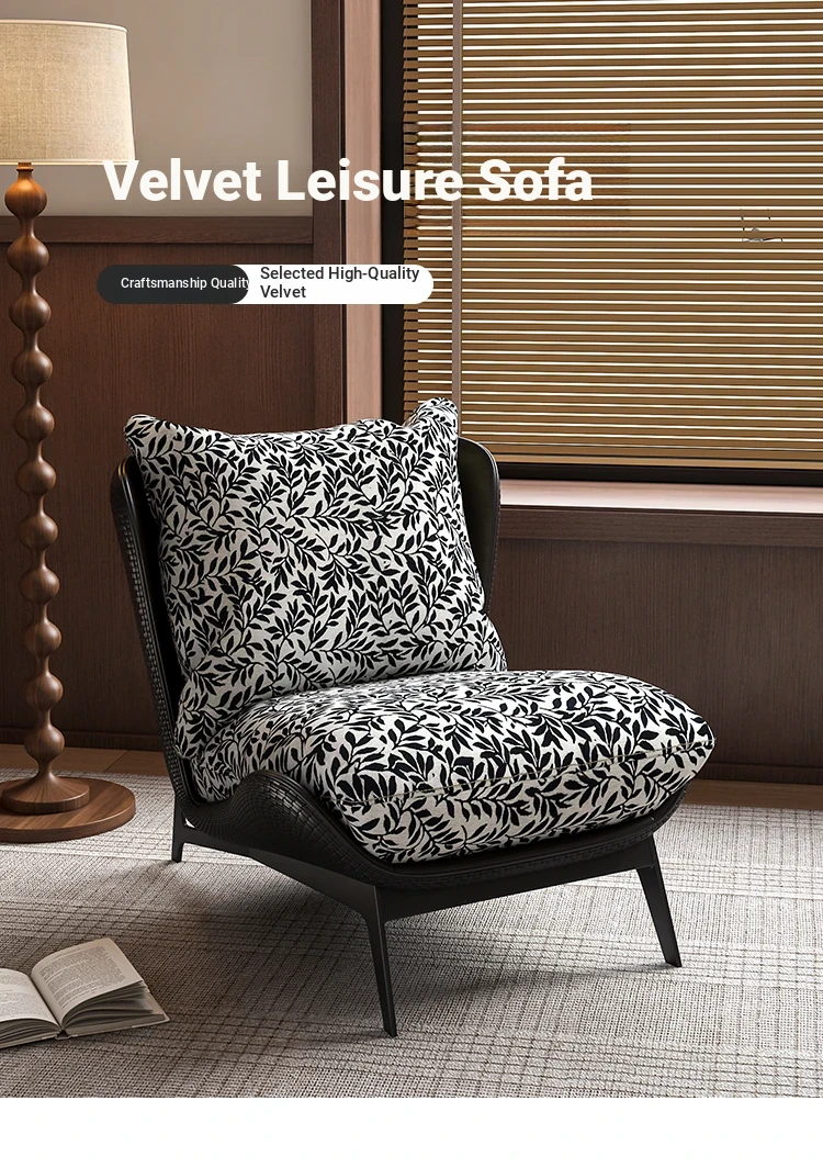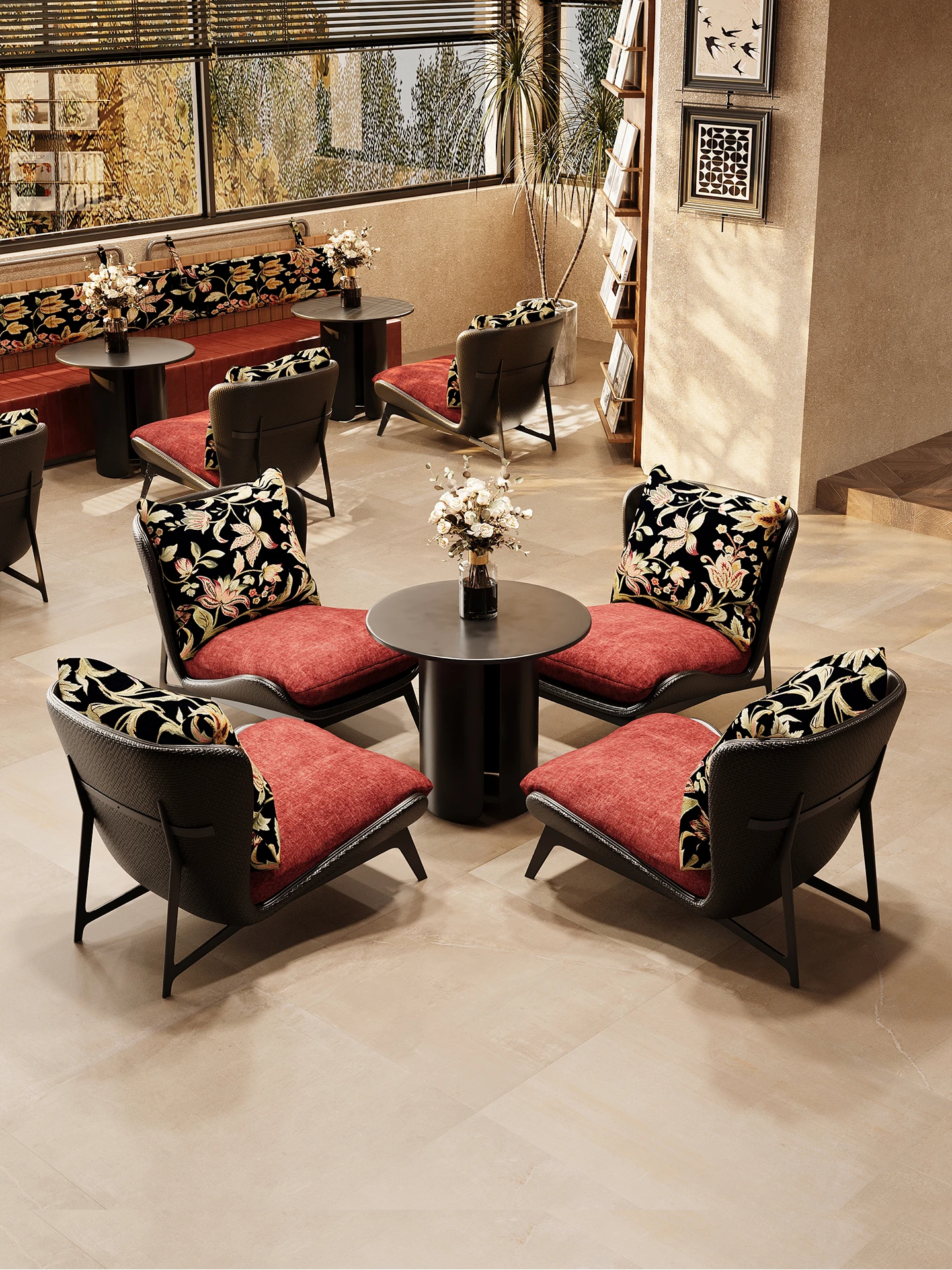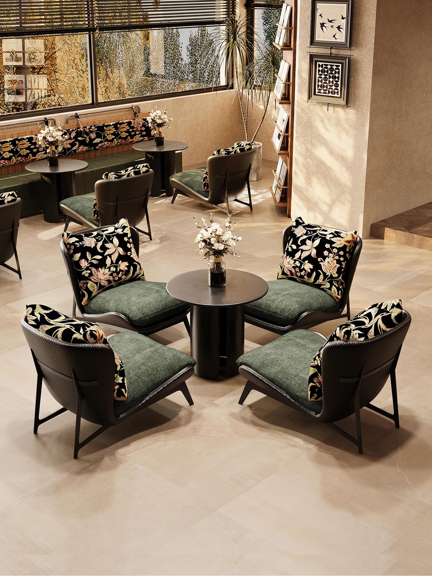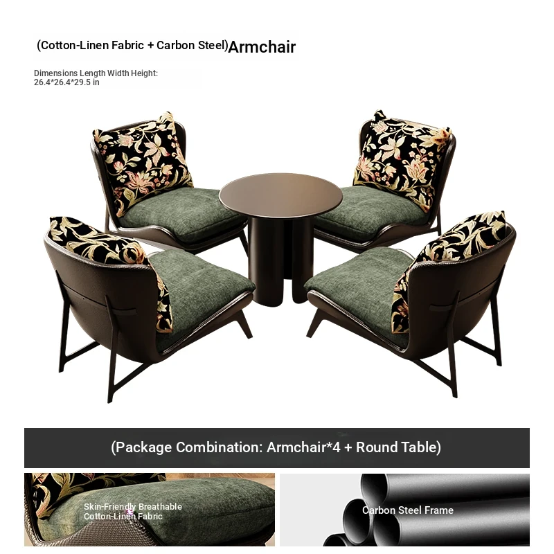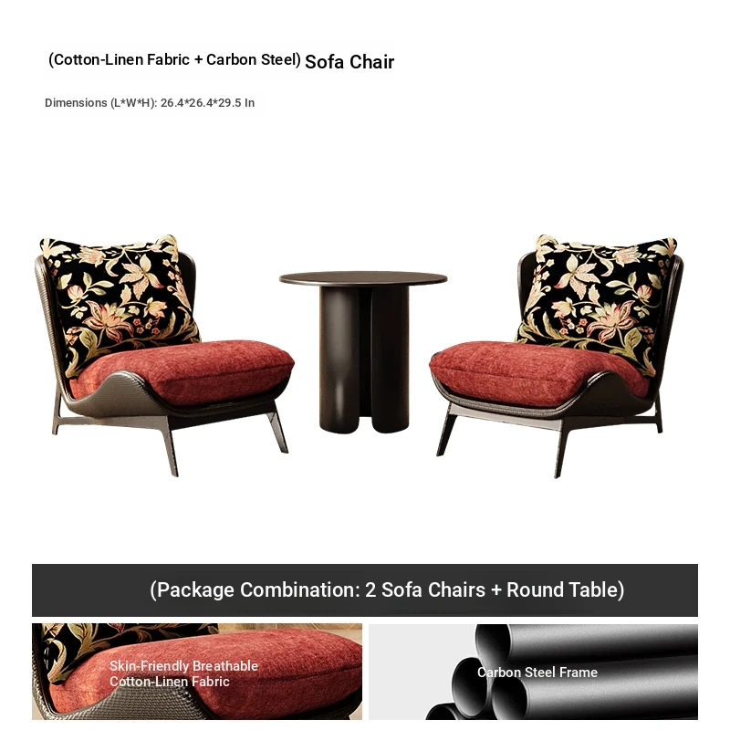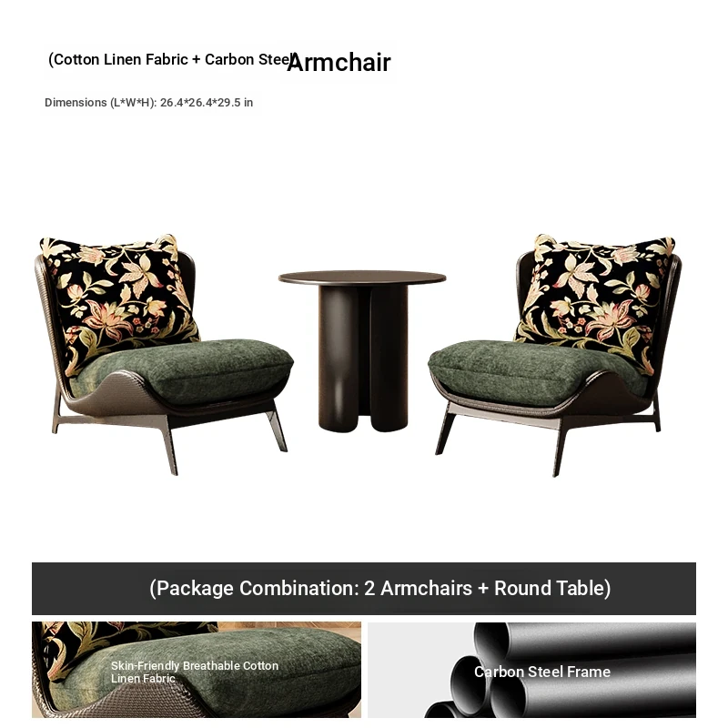 Vintage Wabi-Sabi Style Single Sofa Chair - Retro Designer Lounge Chair for Cozy Guesthouses, Perfect for Reception and Conversations, Includes One Table and Two Chairs Set