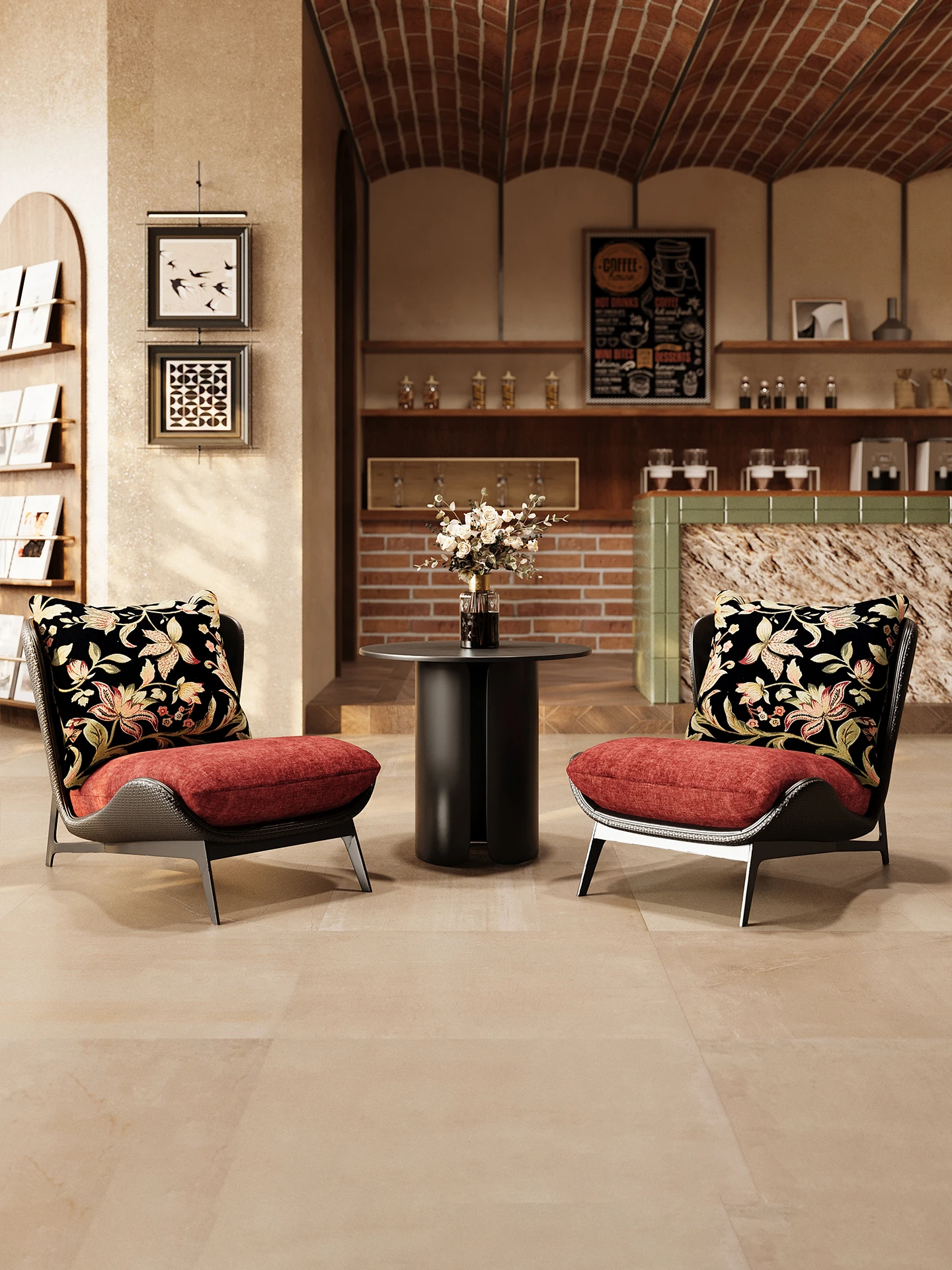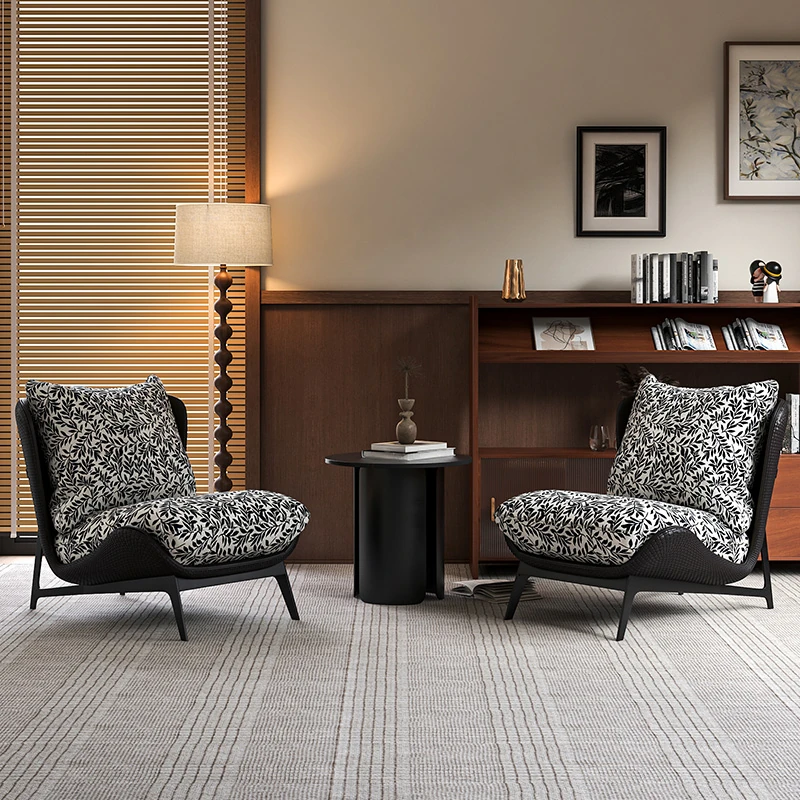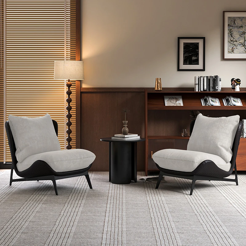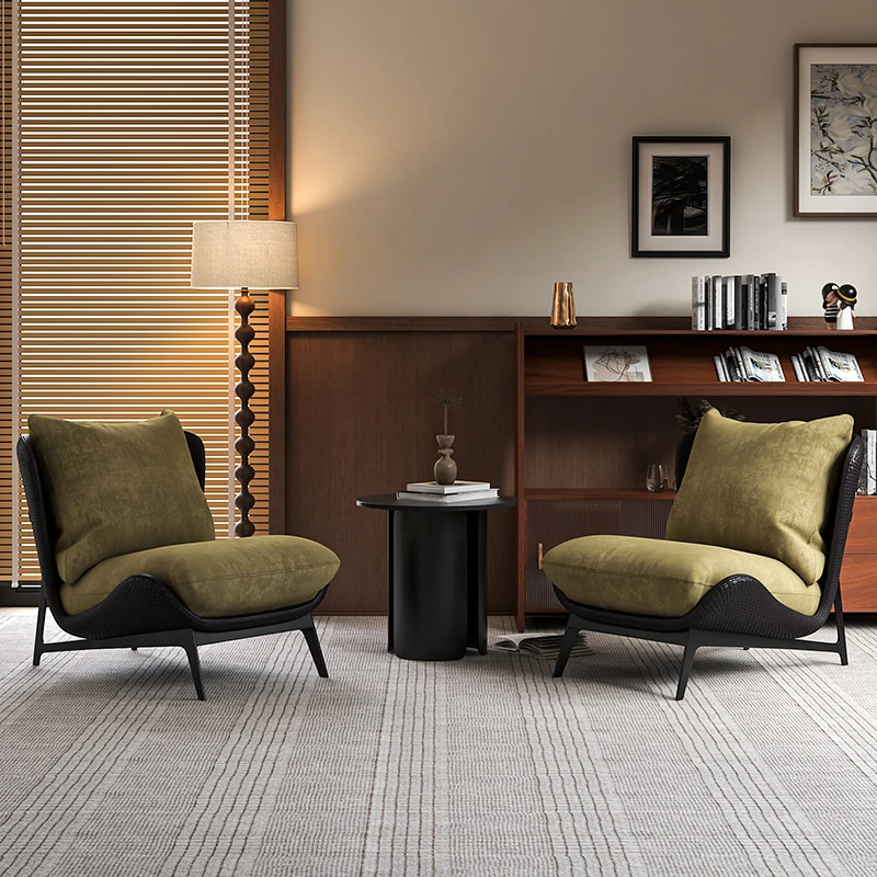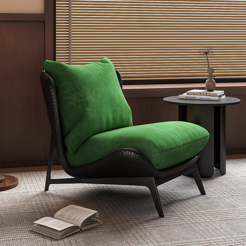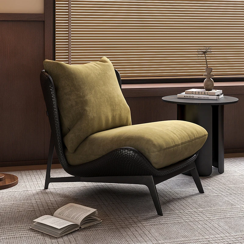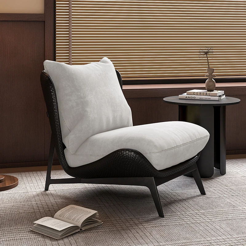 Vintage Wabi-Sabi Style Single Sofa Chair - Retro Designer Lounge Chair for Cozy Guesthouses, Perfect for Reception and Conversations, Includes One Table and Two Chairs Set