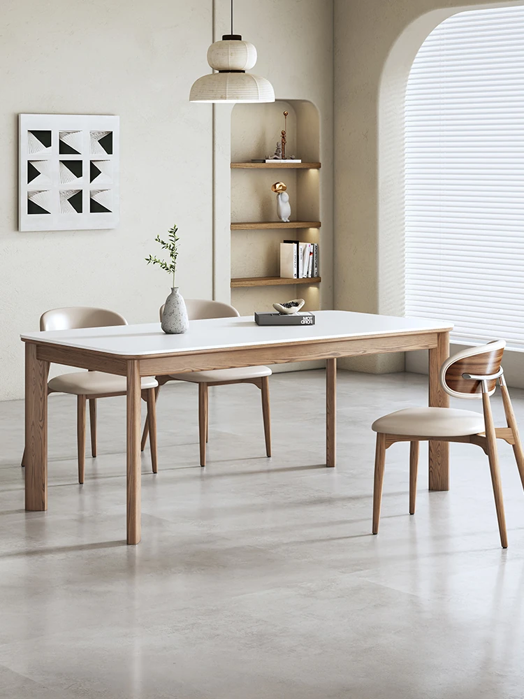 北欧スタイルの岩板ダイニングテーブル&チェアセット - モダンでシンプル、狭いお部屋にもぴったりの長方形ホワイトアッシュ無垢材の食卓。おしゃれで機能的な空間を演出!