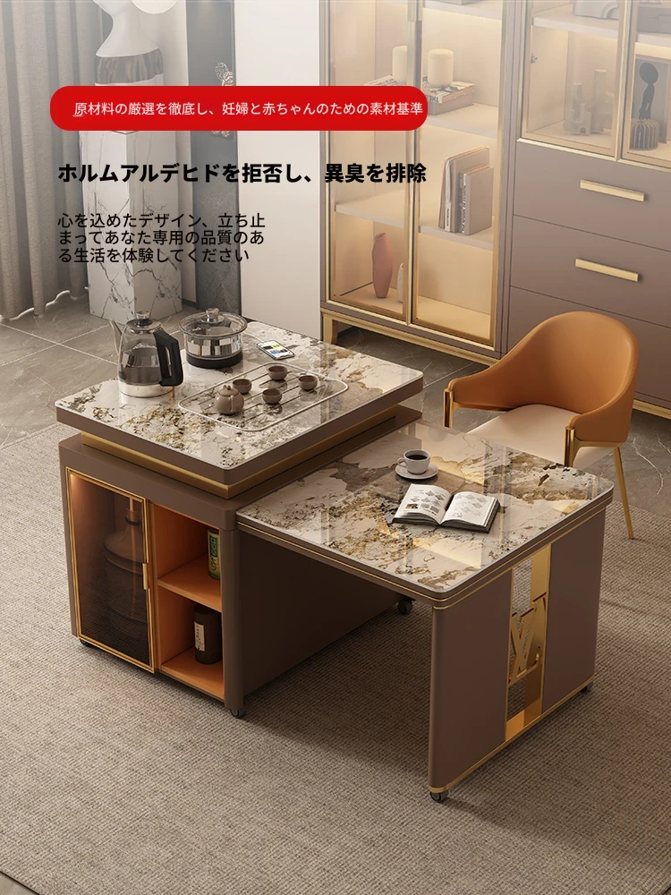 実木製のロックボード埋込式多機能ダイニングテーブル - 電磁調理器付き、温かい料理を楽しめる!モダンでシンプルなデザイン、家庭用に最適、伸縮可能で使い勝手抜群の食卓。