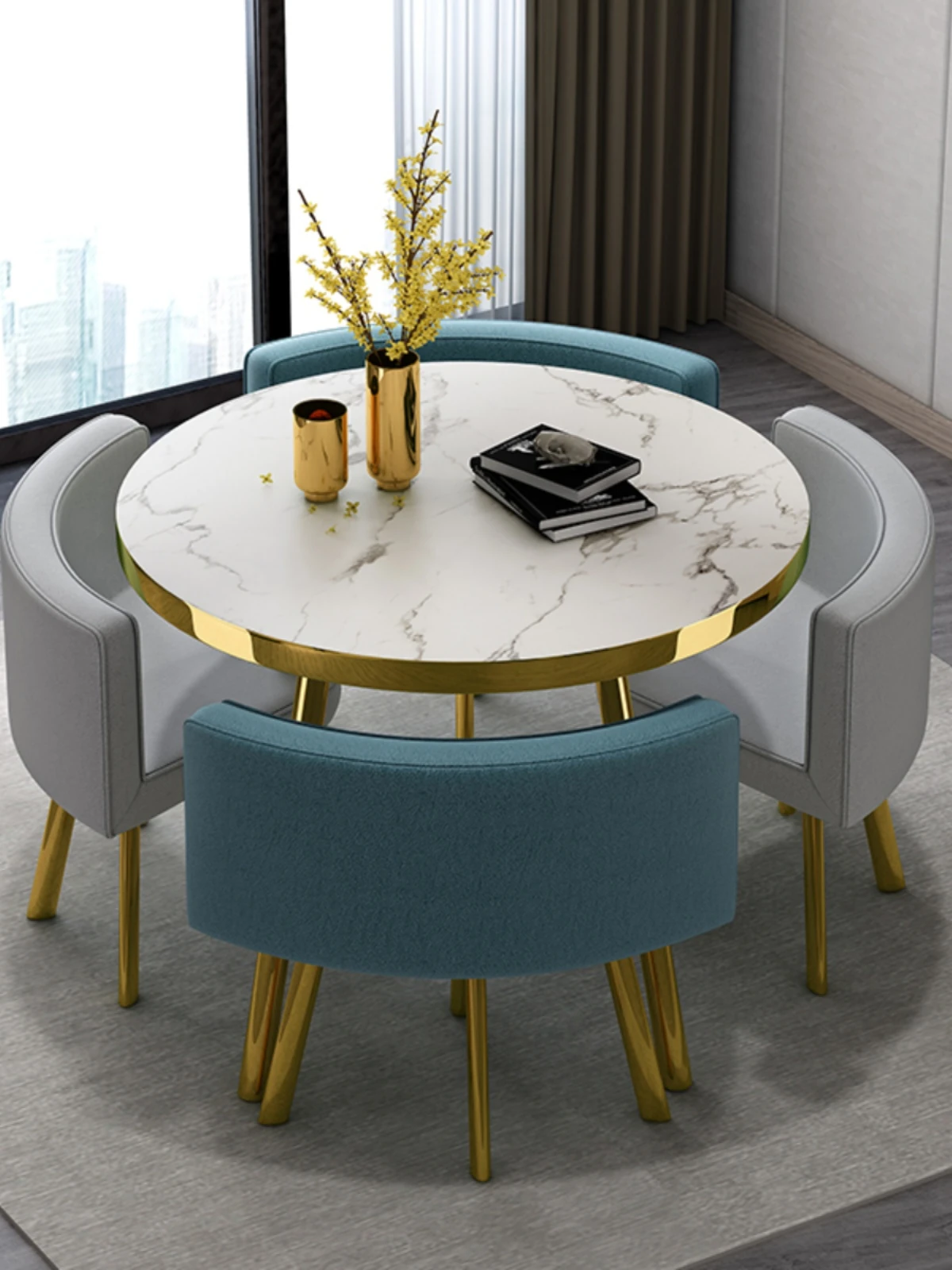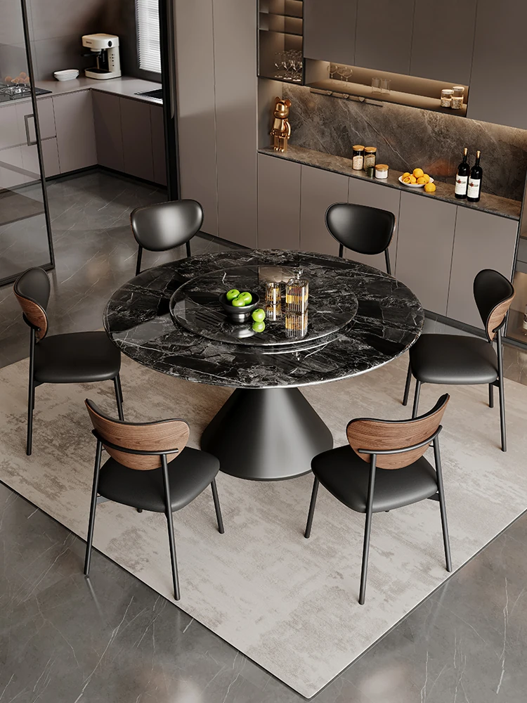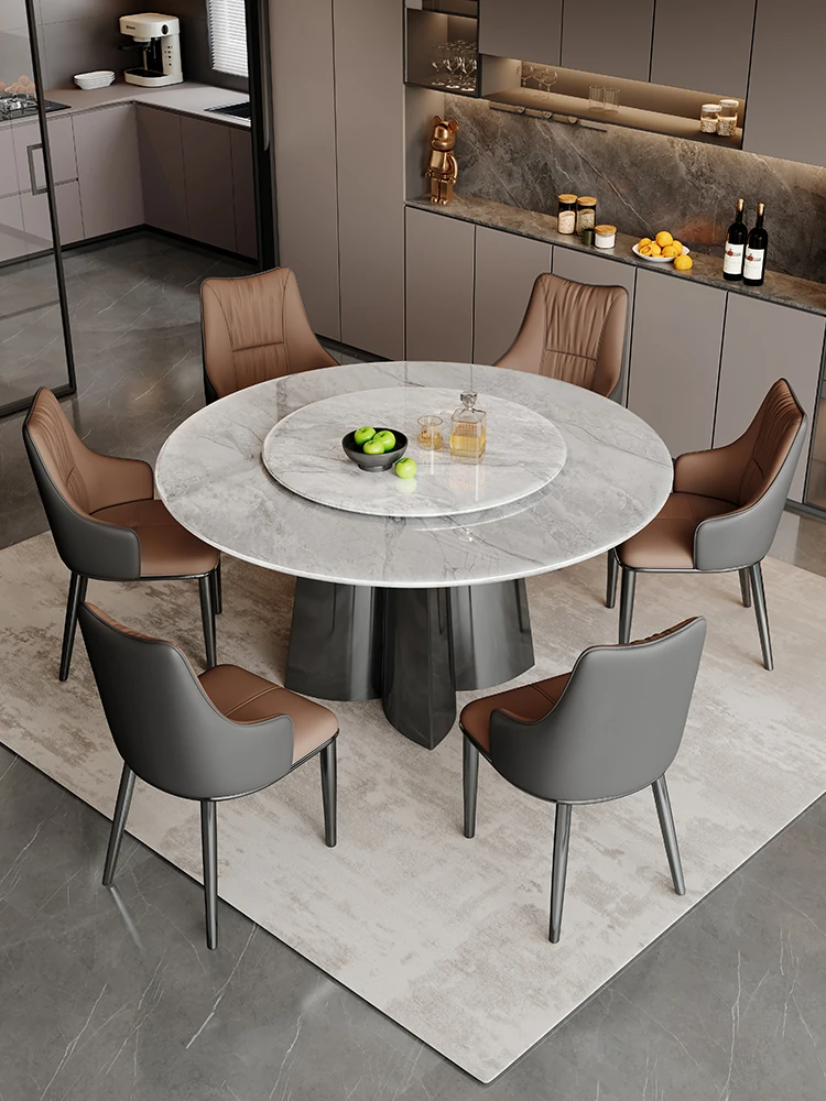 ラウンドテーブルの軽奢大理石ダイニングセット|モダンでシンプルなデザイン|小型住宅に最適な高級マイクロクリスタル石の食卓|食事の時間を特別に演出します!