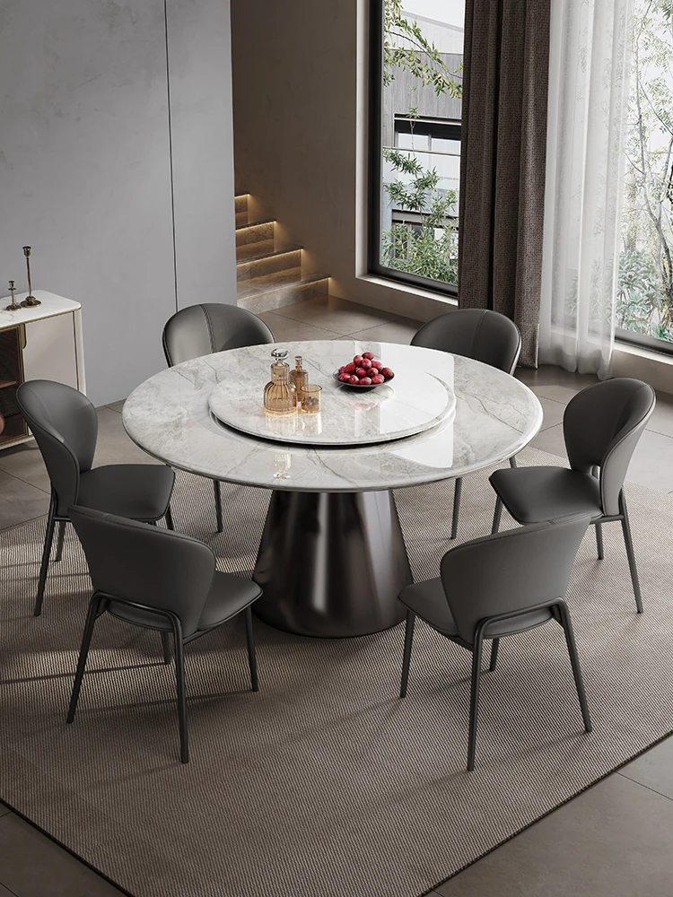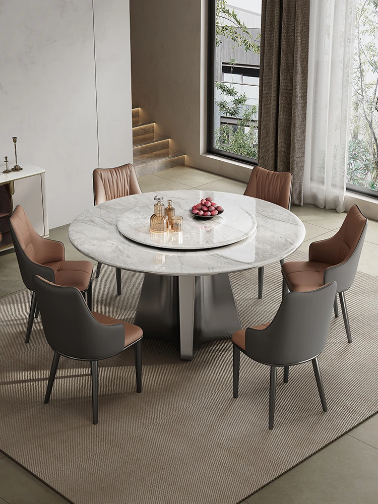 高級大理石ダイニングテーブルセット|現代的なミニマルデザイン|高品質のマイクロクリスタルストーン使用|家庭用ラウンドテーブル|回転式の大きな円卓で快適な食事体験を!