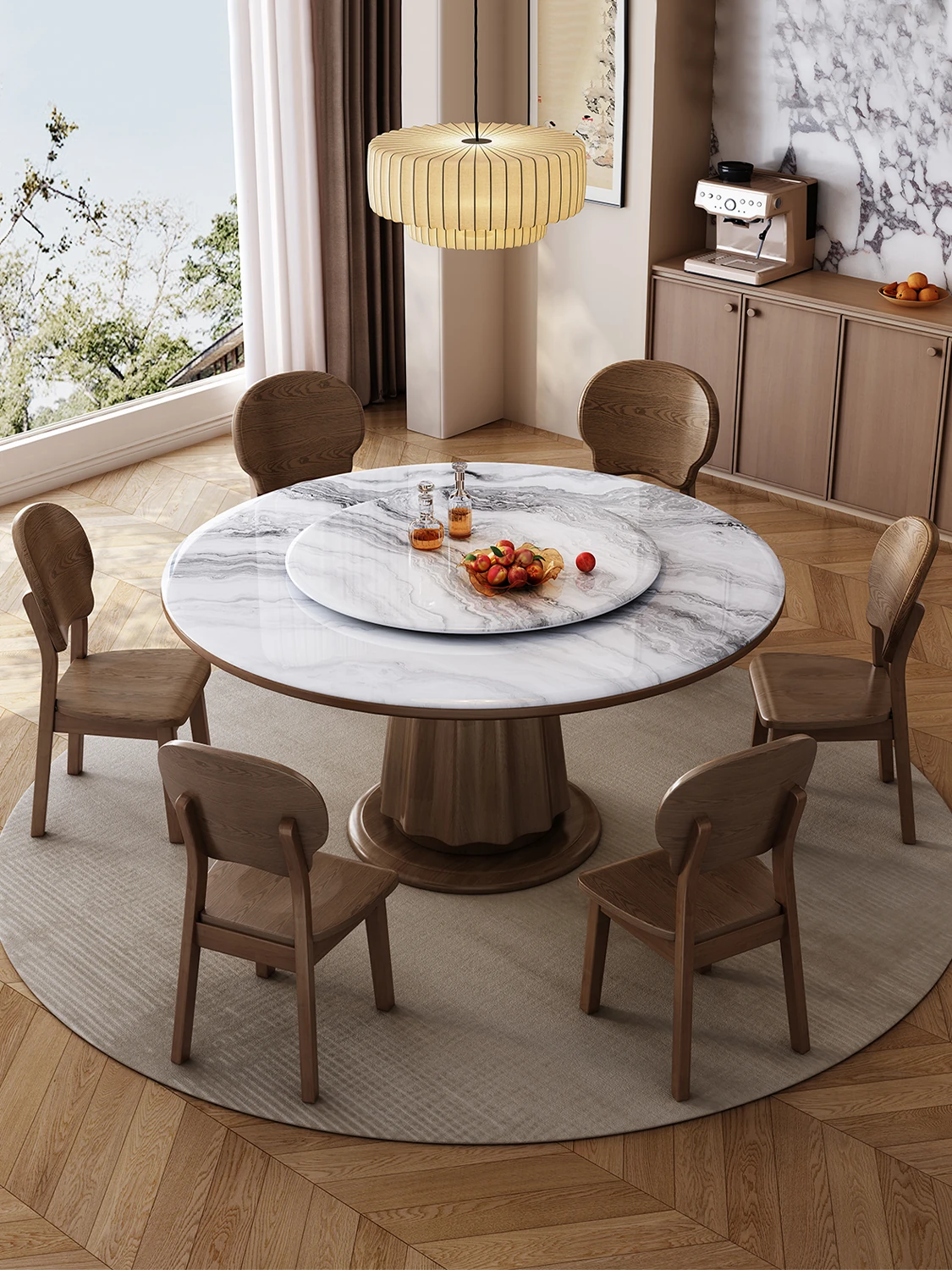 高級天然木と大理石のモダンシンプルなダイニングテーブルセット - 中古風のミクロクリスタル円形テーブル、家庭用に最適なスタイリッシュな食卓!
