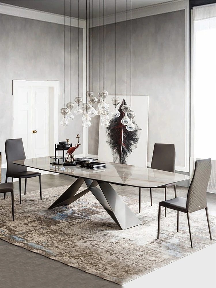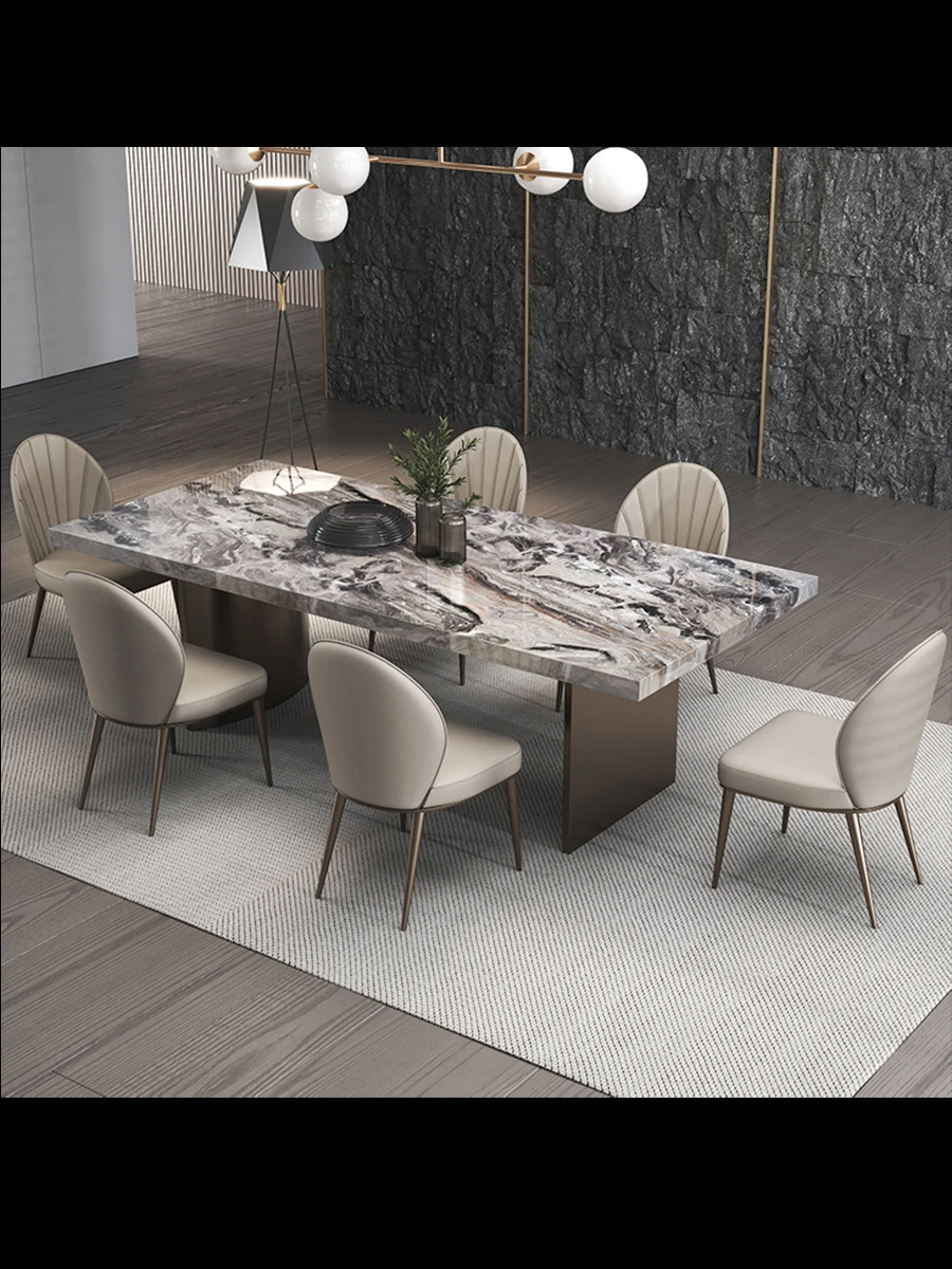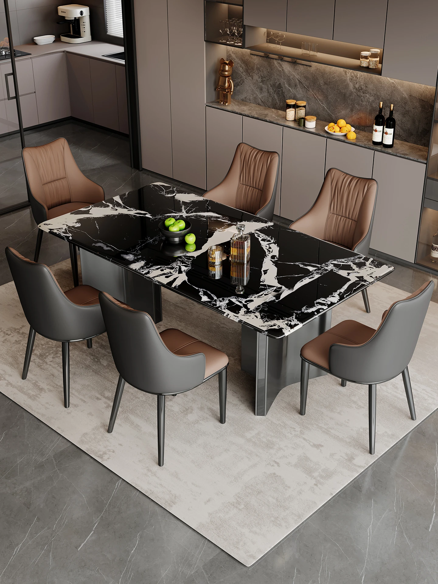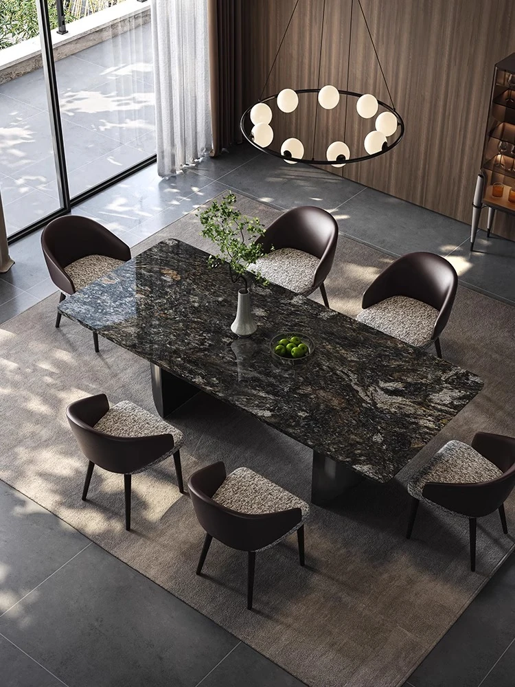 イタリアンモダンミニマリストのスレートダイニングテーブル&チェアセット - ラグジュアリー感溢れる北欧スタイル、コンパクトな小型住宅に最適な長方形大理石テーブル。おしゃれで洗練された食卓空間を演出!