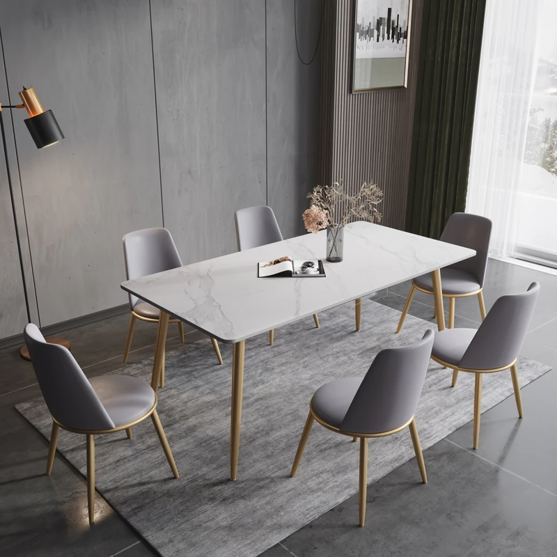北欧風マーブルダイニングテーブル&チェアセット|イタリアンミニマリズムの長方形デザイン|小スペースに最適なモダンラグジュアリー家具