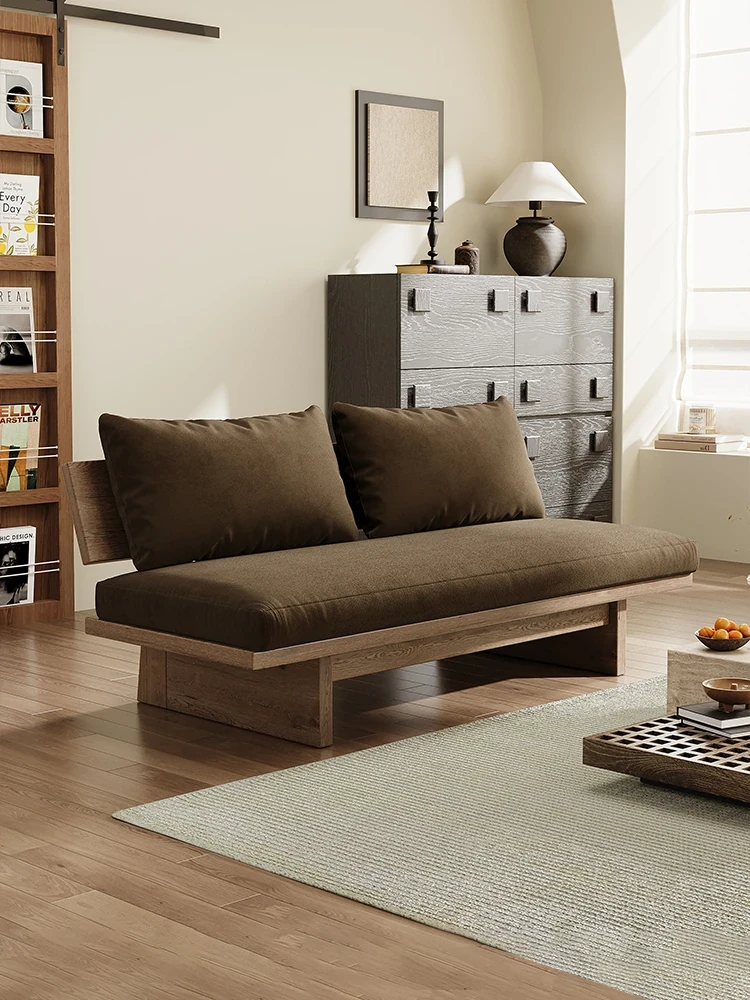 Wabi-Sabi Style Solid Wood Sofa - Designer Living Room Furniture for Home, Café, and Guesthouses - Minimalist Vintage Fabric Armchair for Hotels and Cozy Spaces