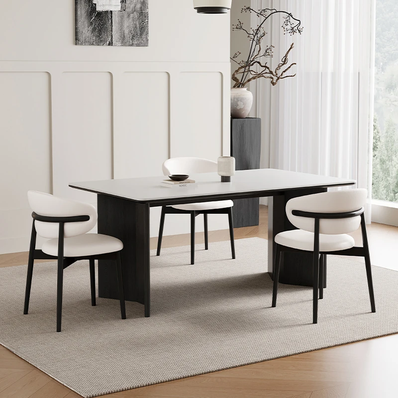 2024年版イタリアンスタイルシンプル天然木製ロックプレートダイニングテーブルセット - モダンなホワイトアッシュ材、トレンディな長方形デザインで、家庭にぴったりの快適な食卓を提供します!