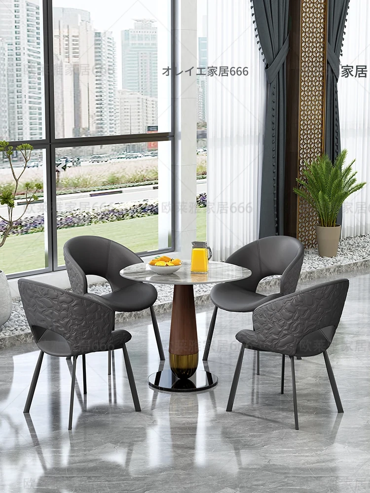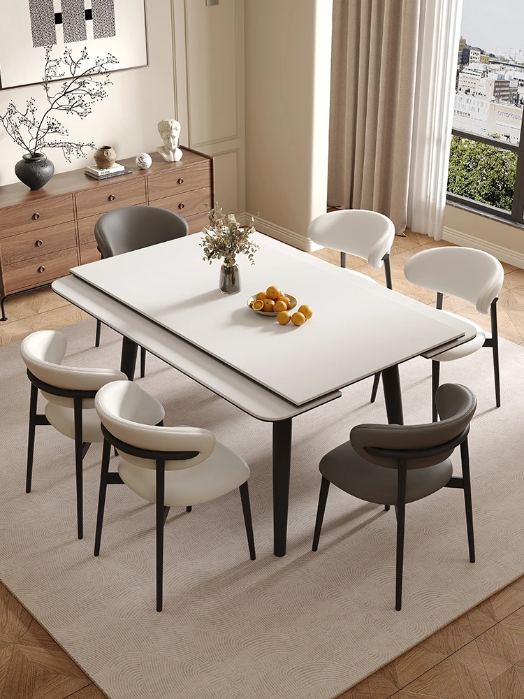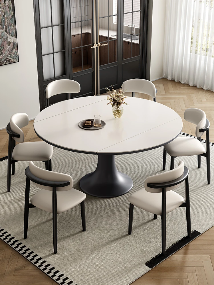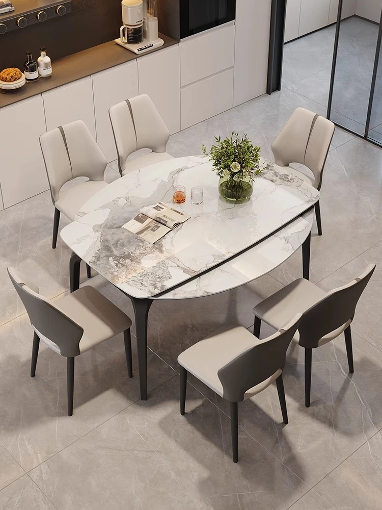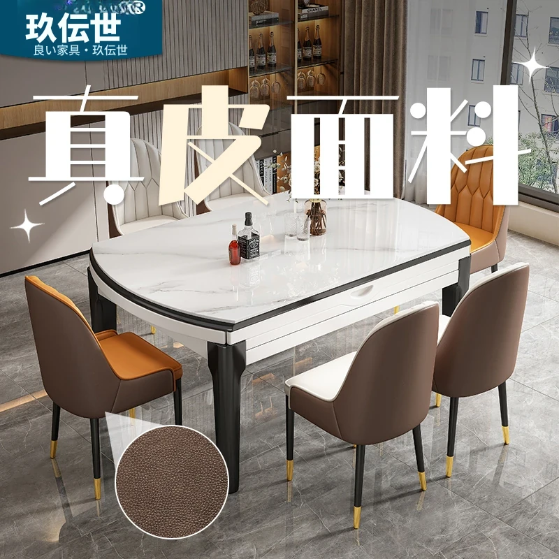 新疆送料無料!モダンでシンプルな岩板ダイニングテーブル&チェアセット。真皮チェア、伸縮式&折りたたみ可能な実木ラウンドテーブル。洗練された軽やかな贅沢感をお楽しみください!