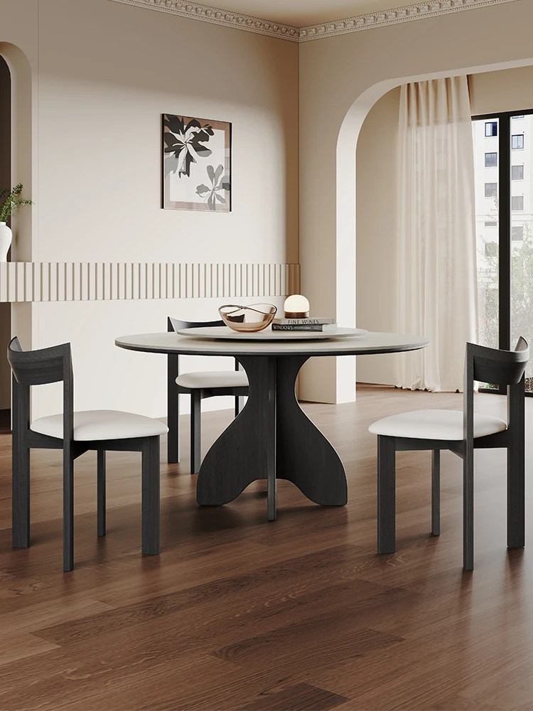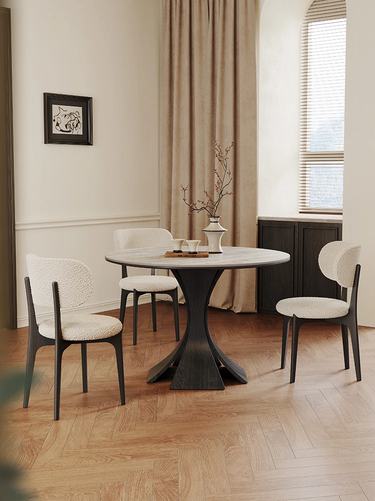 オーガスティン フレンチヴィンテージ 洞石風 ラウンドダイニングテーブル 小型モダン軽奢高級 天然木製 食卓 おしゃれな空間を演出する特別な一品!