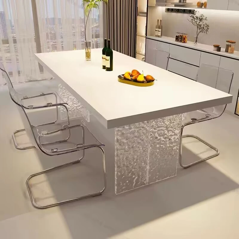 イタリアンミニマリズム 大波紋アクリル浮遊岩板 ダイニングテーブル 軽奢華 モダンシンプルクリーム風 長方形テーブル
